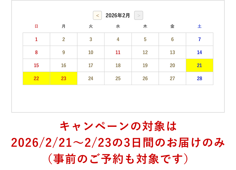 2026年 2/21[土]・22[日]・23[月・祝]お届け限定