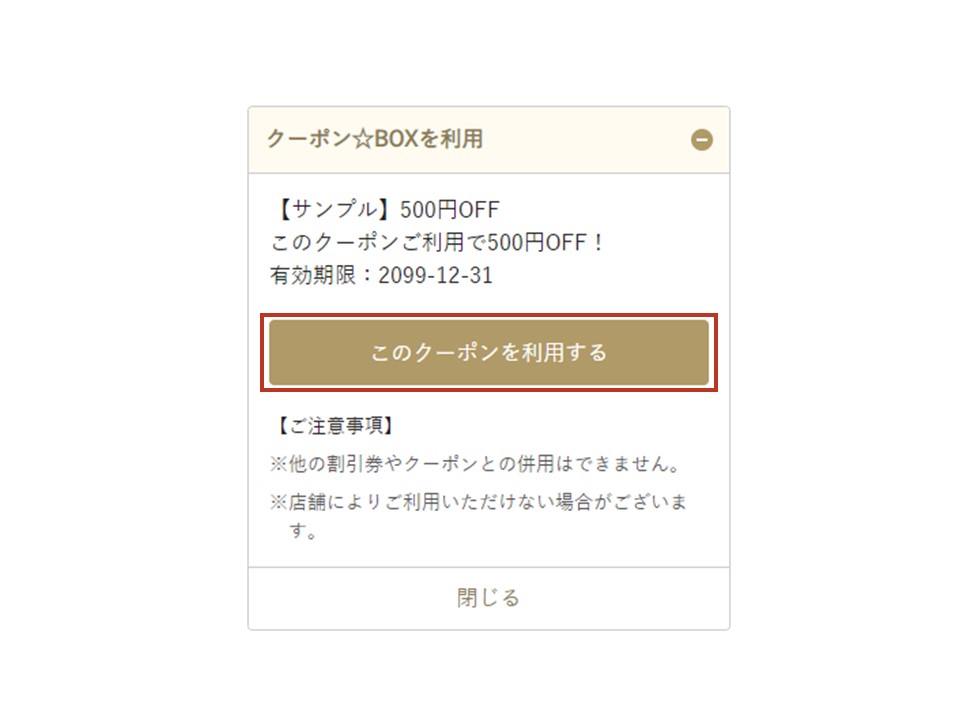 (1)「クーポン☆BOXを利用」ボタンを押してください。