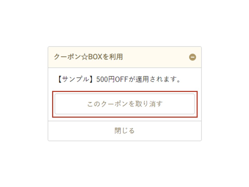 (3)ご利用になるクーポン名が表示されますので、内容を確認してください。(クーポンのご利用を取り消したい場合は「このクーポンを取り消す」ボタンを押してください)