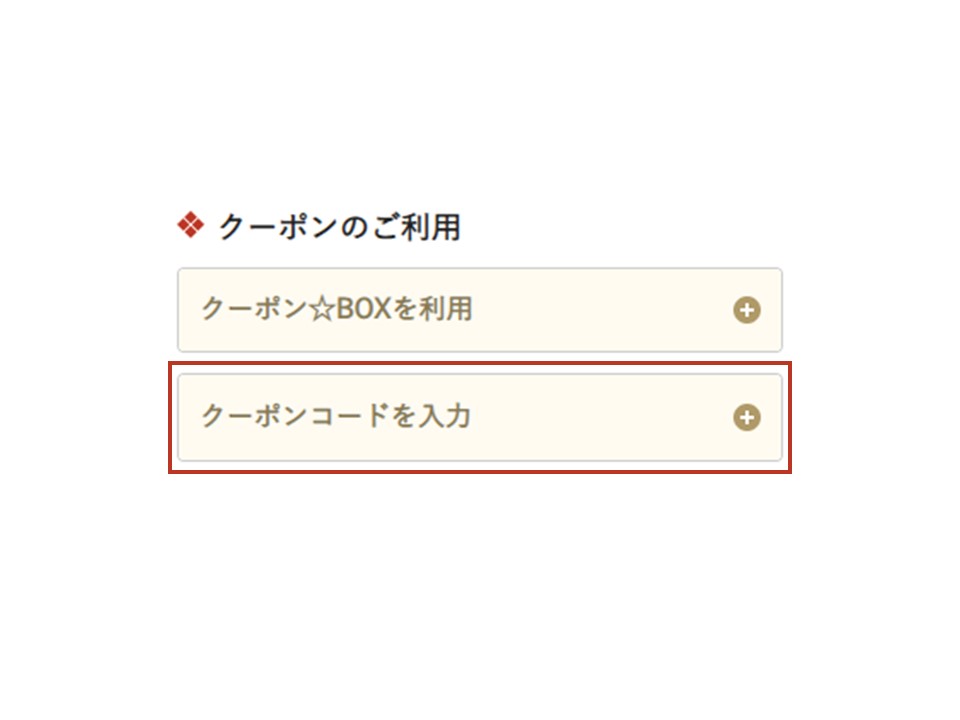 クーポンはお支払い方法の指定(注文情報を入力する)の入力時にご利用いただけます。