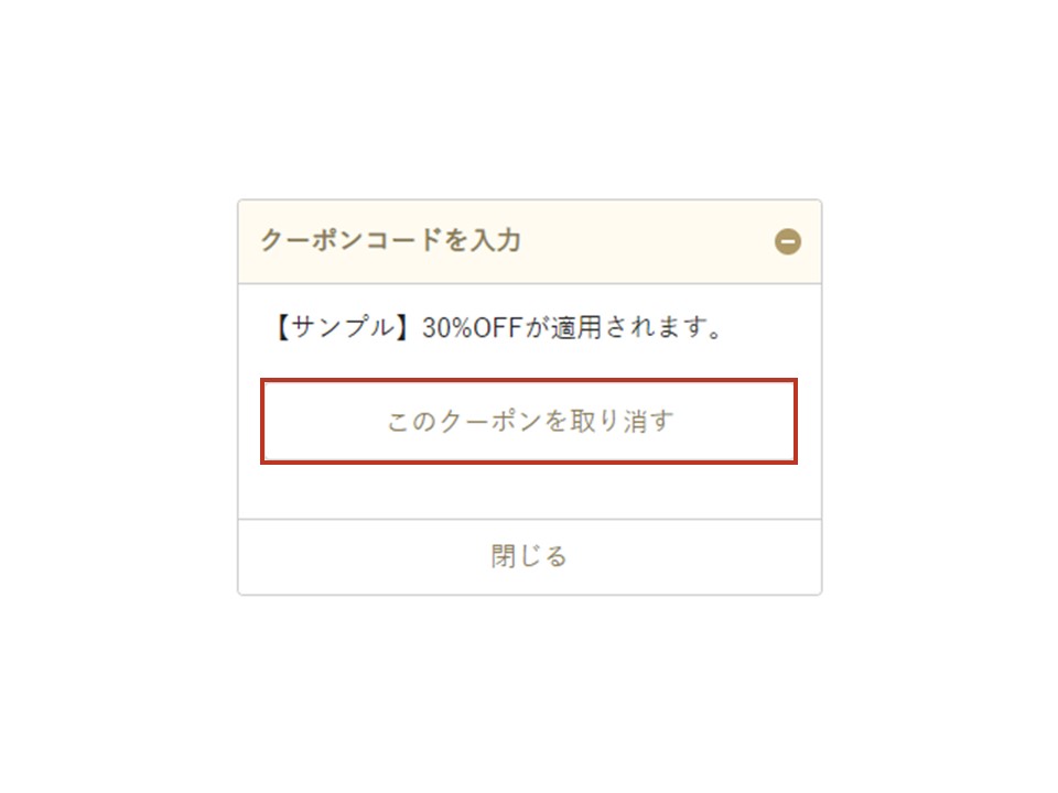 (3)正しいクーポンコードを入力すると、クーポン名が表示されますので、内容を確認してください。(クーポンのご利用を取り消したい場合は「このクーポンを取り消す」ボタンを押してください)