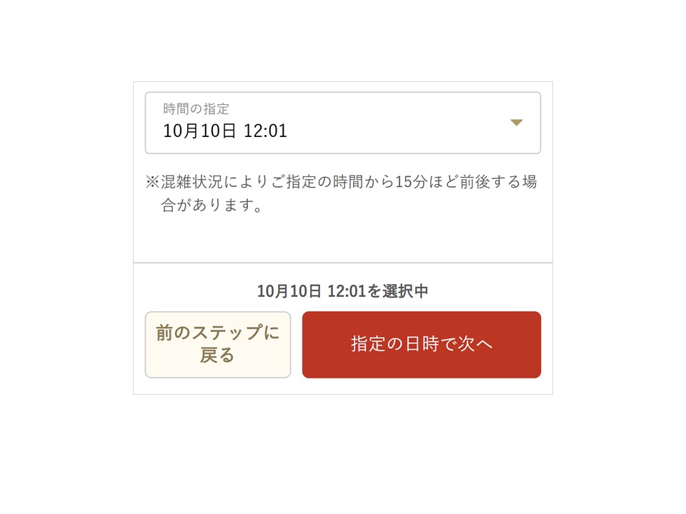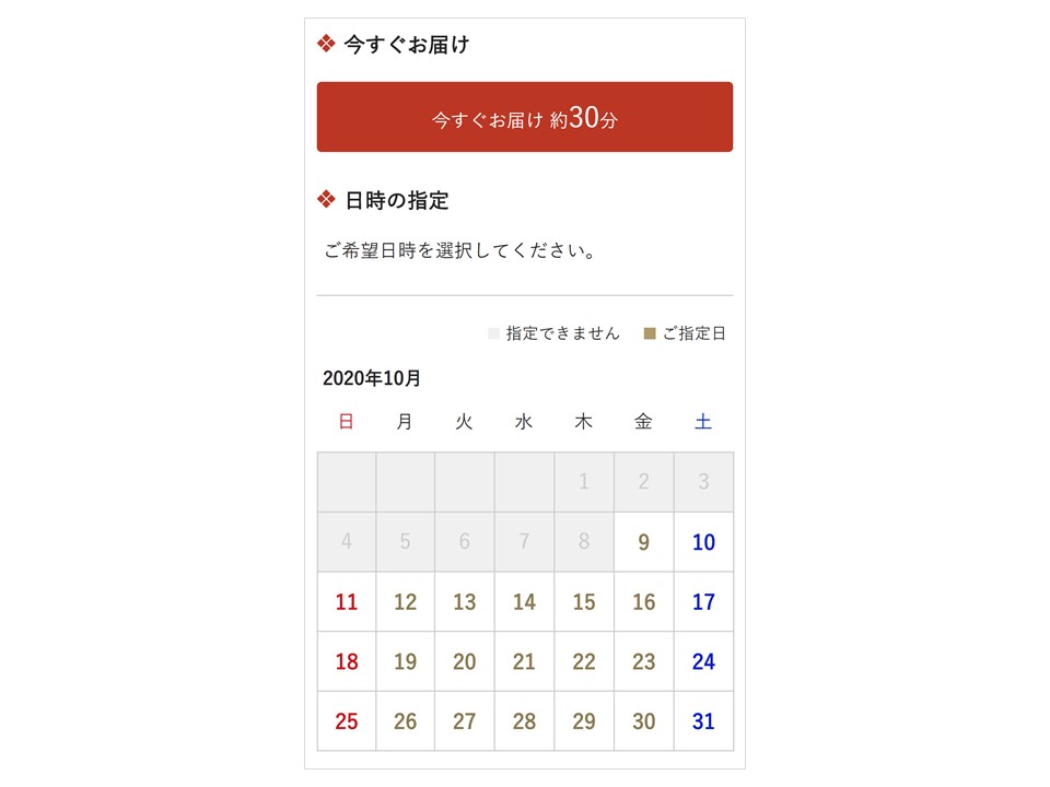 「今すぐお届け」のボタンでは記載されている時間を目安にお届け時間を指定することができます。