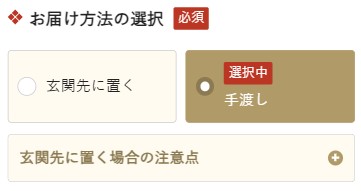 「玄関先に置く」か「手渡し」のいずれかを選択してください。