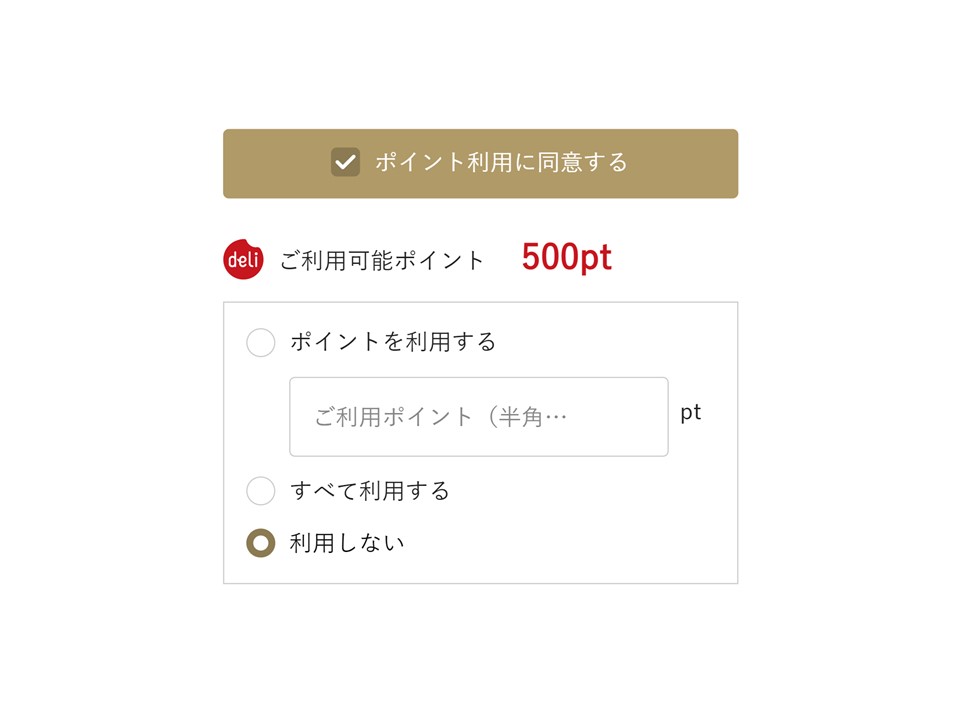 デリポイントはお支払い方法の指定(注文情報を入力する)の入力時にご利用いただけます。