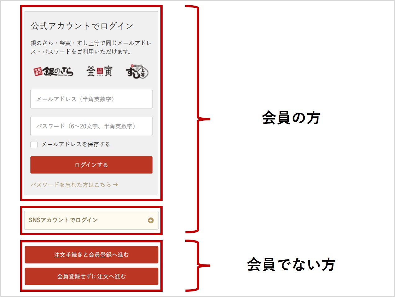 (例えば、「銀のさら」のご注文で貯めたポイントを「釜寅」や「すし上等」のお支払いに利用することができます。)