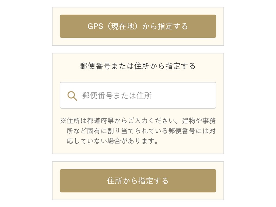 ご指定頂いた住所によっては、店舗がお持ち帰り(テイクアウト)に対応している場合があります。