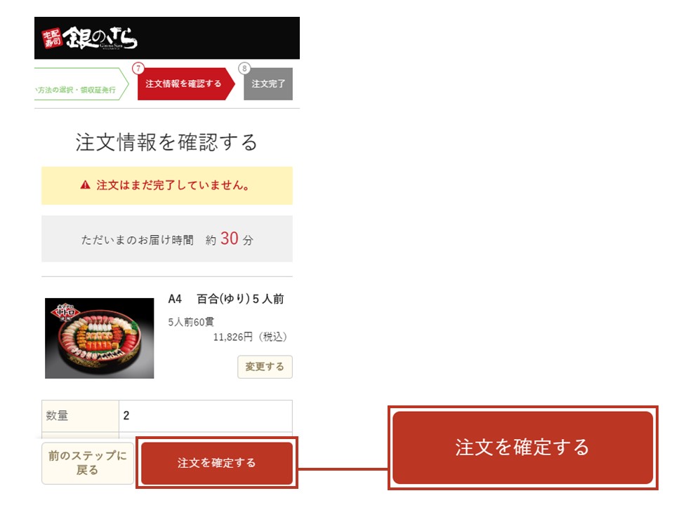 ご注文内容に間違いがないことを確認し、「注文を確定する」ボタンを押してください。
