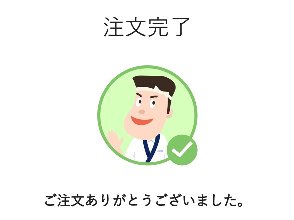 注文の完了画面が表示されてご注文完了となります。ご登録いただいたメールアドレス宛に注文完了メールをお送りします。