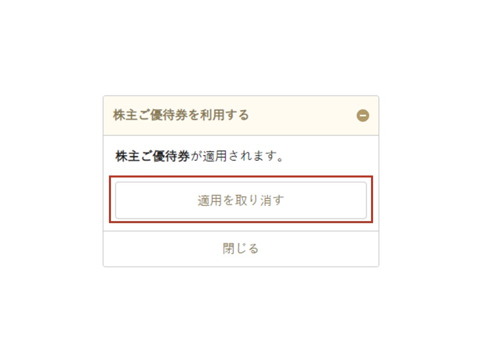株主ご優待券は、お支払い方法の指定(注文情報を入力する)の入力時にご利用いただけます。「株主ご優待券を利用する」ボタンを押してください。