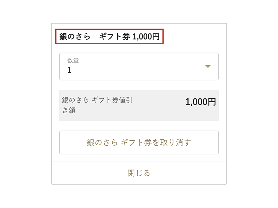 (2)正しい銀のさらギフト券コードを入力すると、ギフト券の金額が表示されますので、確認してください。